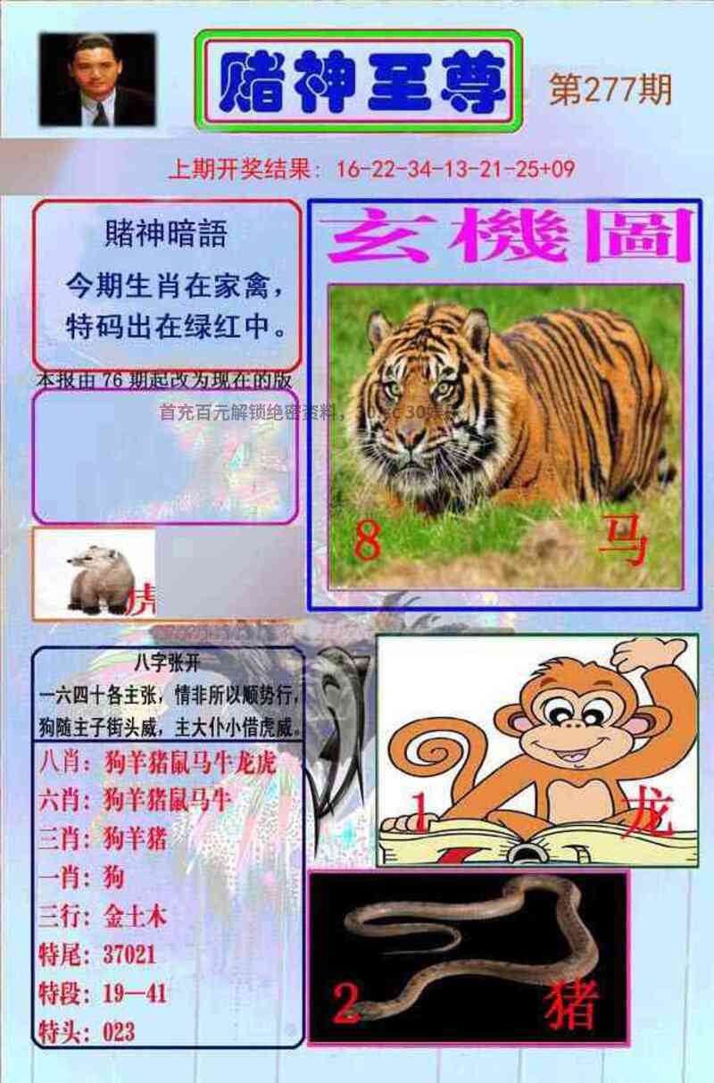 277期九肖羊兔鸡猴龙狗蛇开:虎16准