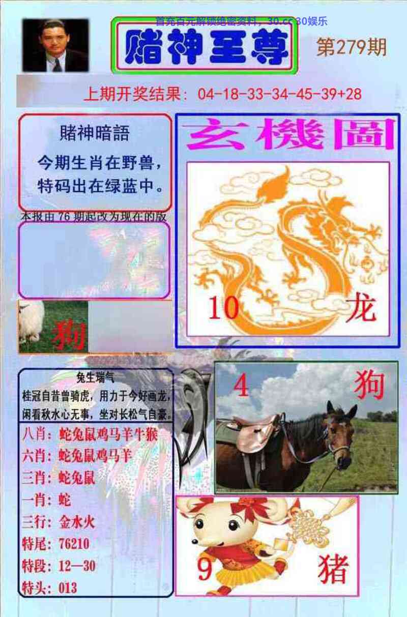 274期九肖猪牛鼠兔龙鸡马蛇开:狗44准